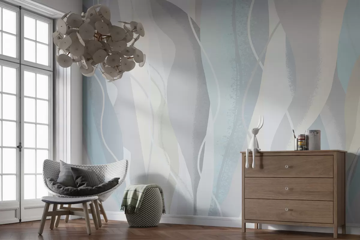 Fotobehang Modern abstract behang in eco-stijl in koele en warme kleuren N° w01124