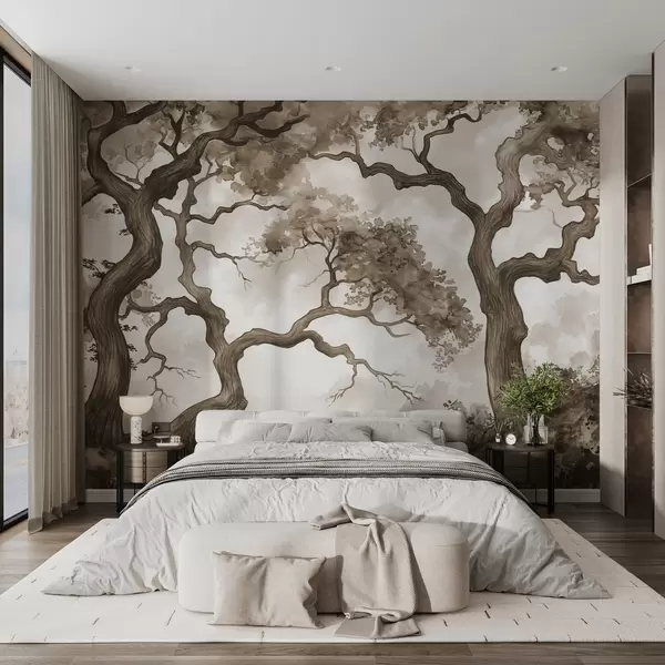 Fotobehang Gedraaide takken in sereen landschap N° w01184v1