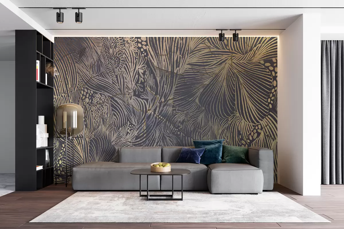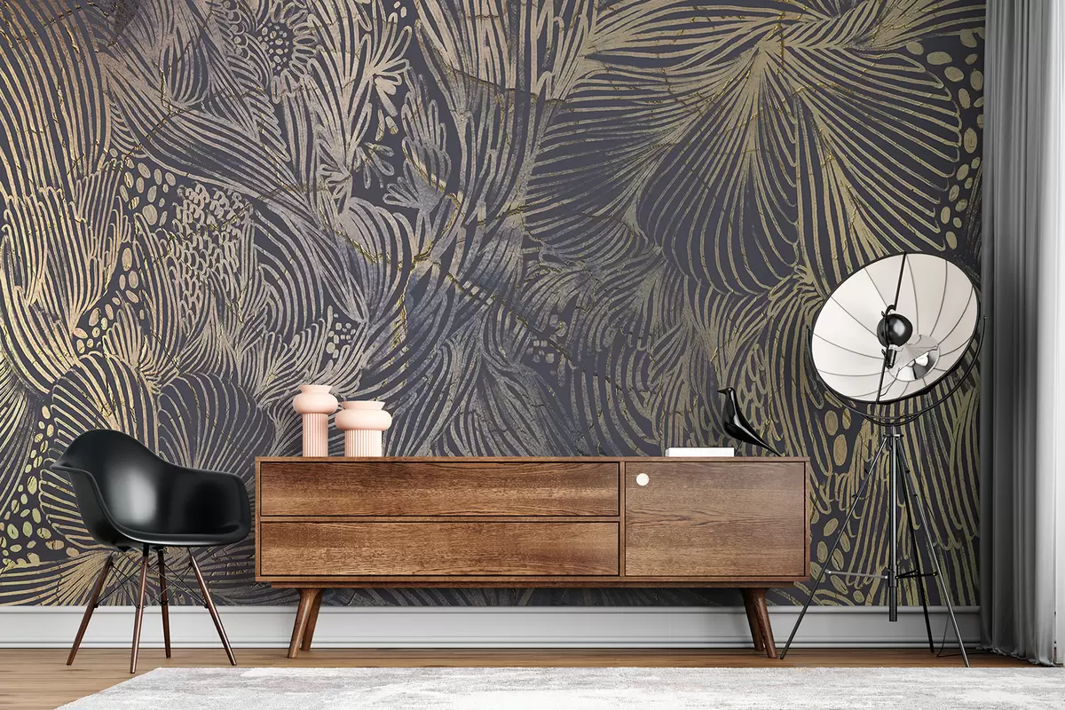 Fotobehang Luxe abstracte print met overlappende organische vormen en lijnen N° w01243