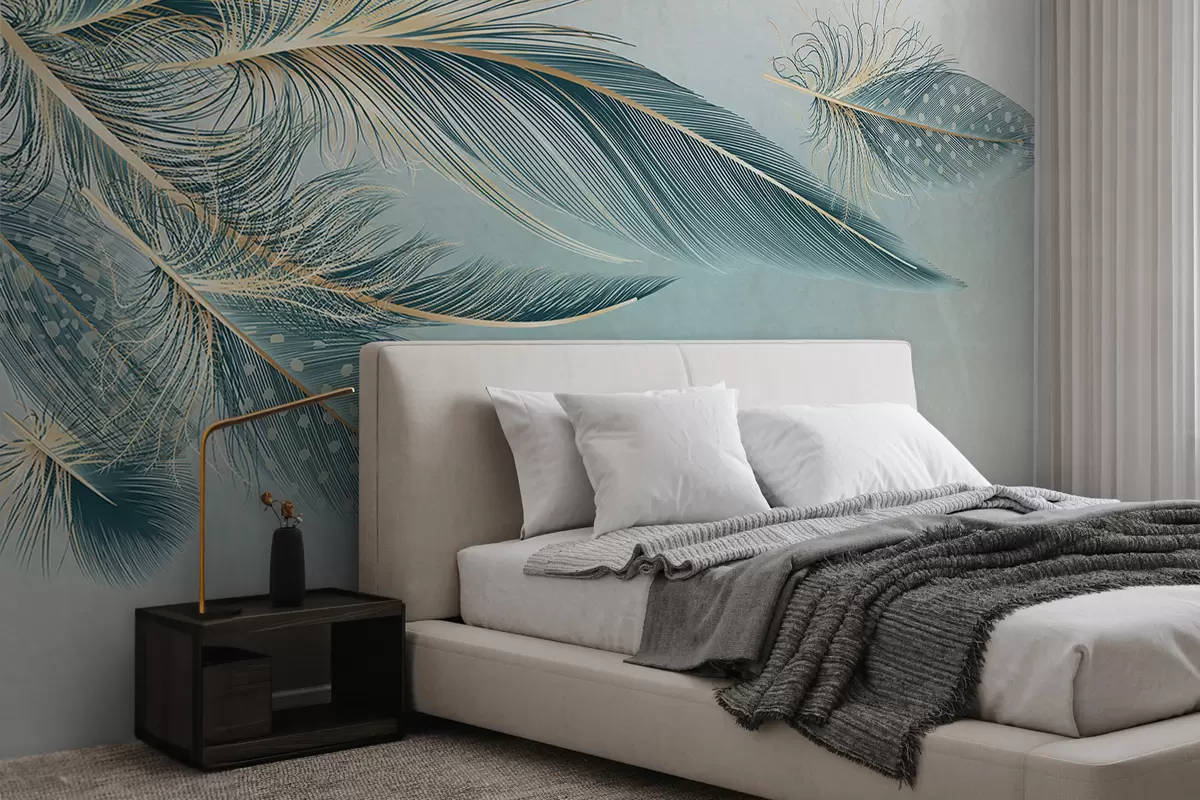 Fotobehang Delicate veren in blauwtinten N° w01312