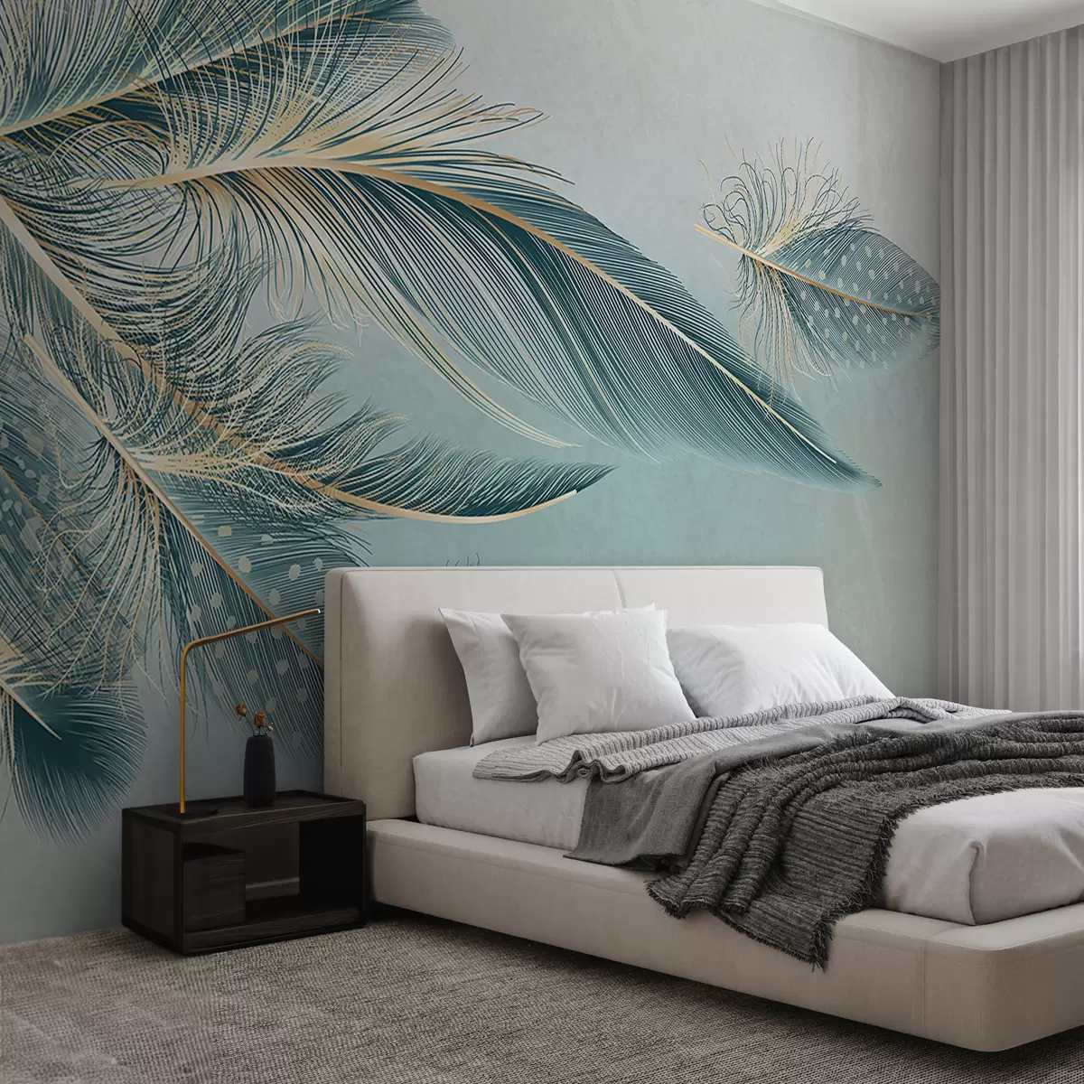 Fotobehang Delicate veren in blauwtinten N° w01312