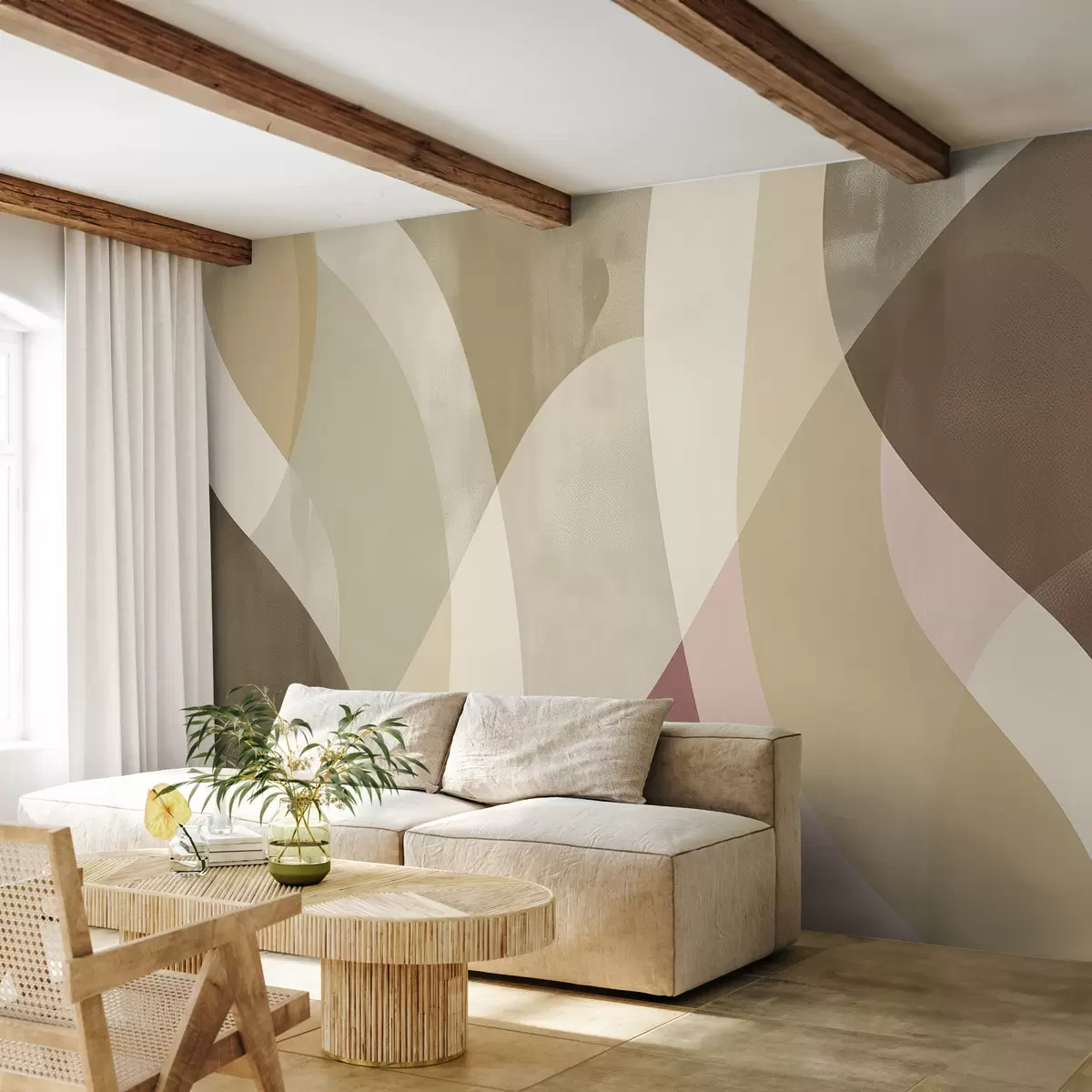 Fotobehang Zachte rondingen in gedempte tinten met vloeiende lijnen en beige gradiënten, minimalistisch en modern N° w01334v1
