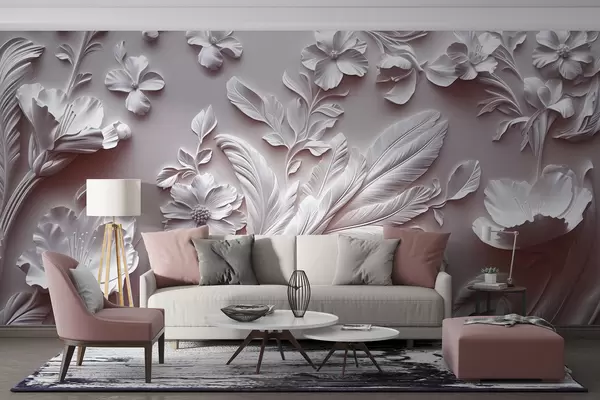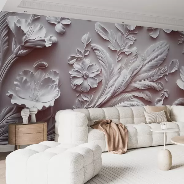 Fotobehang Prachtige verhoogde bloemen en bladeren in roze tinten N° w01356v1