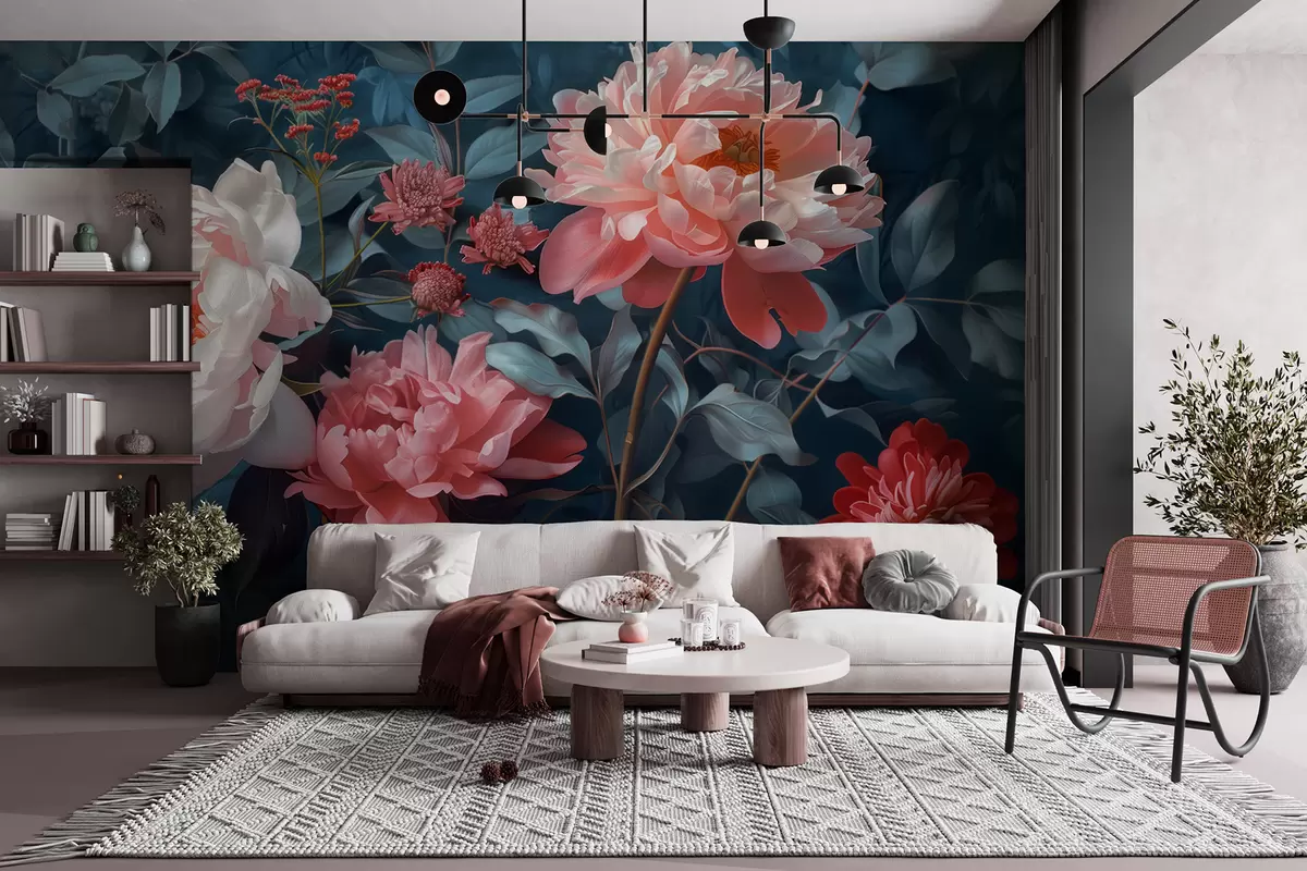 Fotobehang Middernacht pioenrozen bloemen N° w01392