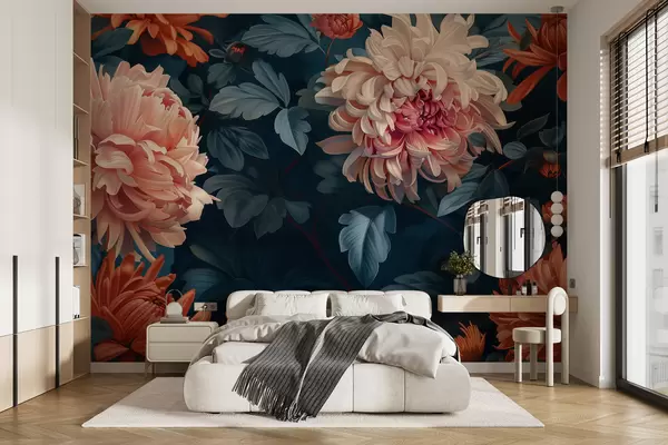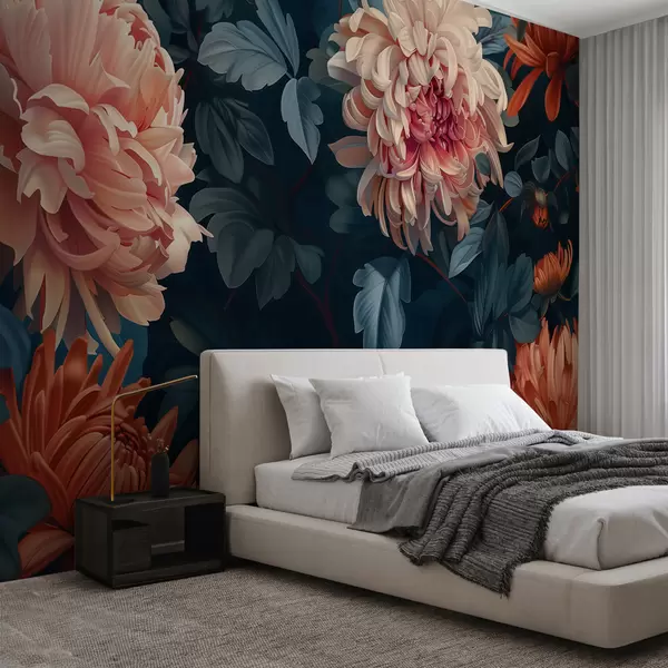 Fotobehang Elegante compositie van chrysanten in pastelkleuren N° w01431