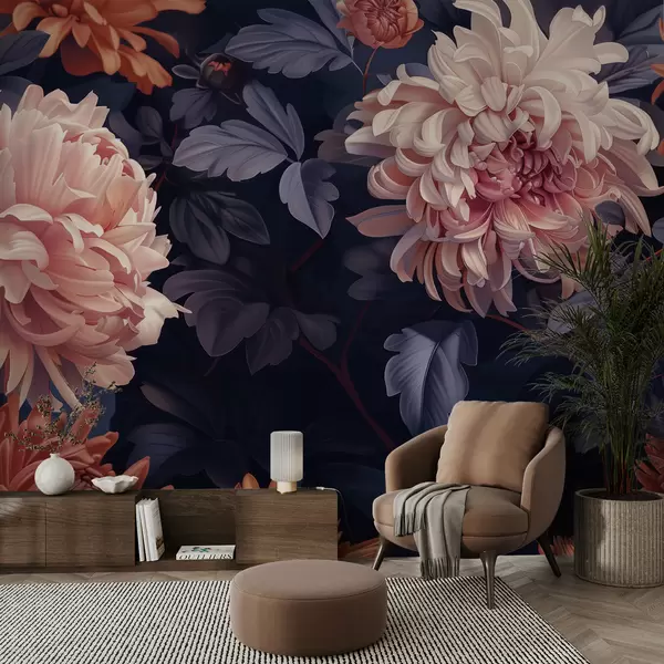 Fotobehang Elegante compositie van chrysanten in paarse tint N° w01431v1