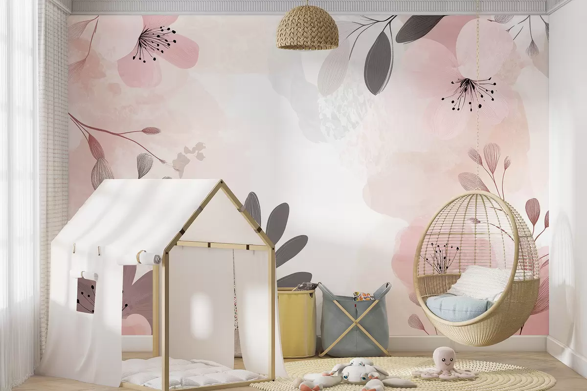 Fotobehang Abstracte bloementekening, natuur, grote bloemen, zacht pastel, roze kleurenpalet N° w01451v1