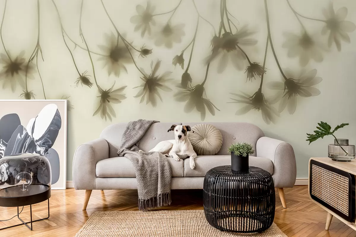 Fotobehang Tedere bloemen in de mist hangend van boven in pastelkleuren N° w01469v1