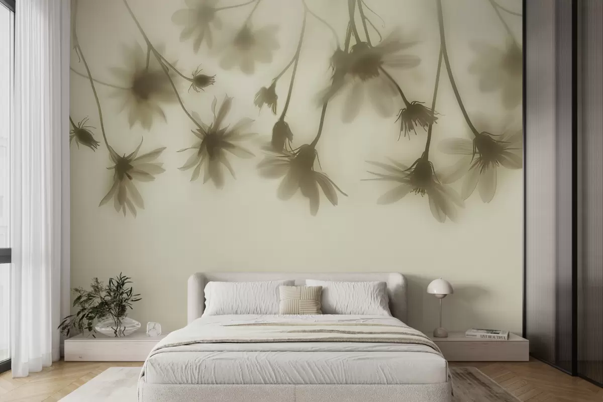 Fotobehang Tedere bloemen in de mist hangend van boven in pastelkleuren N° w01469v1