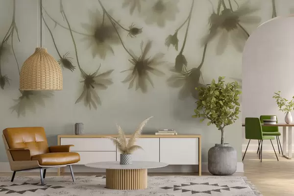 Fotobehang Tedere bloemen in de mist hangend van boven in pastelkleuren N° w01469v1