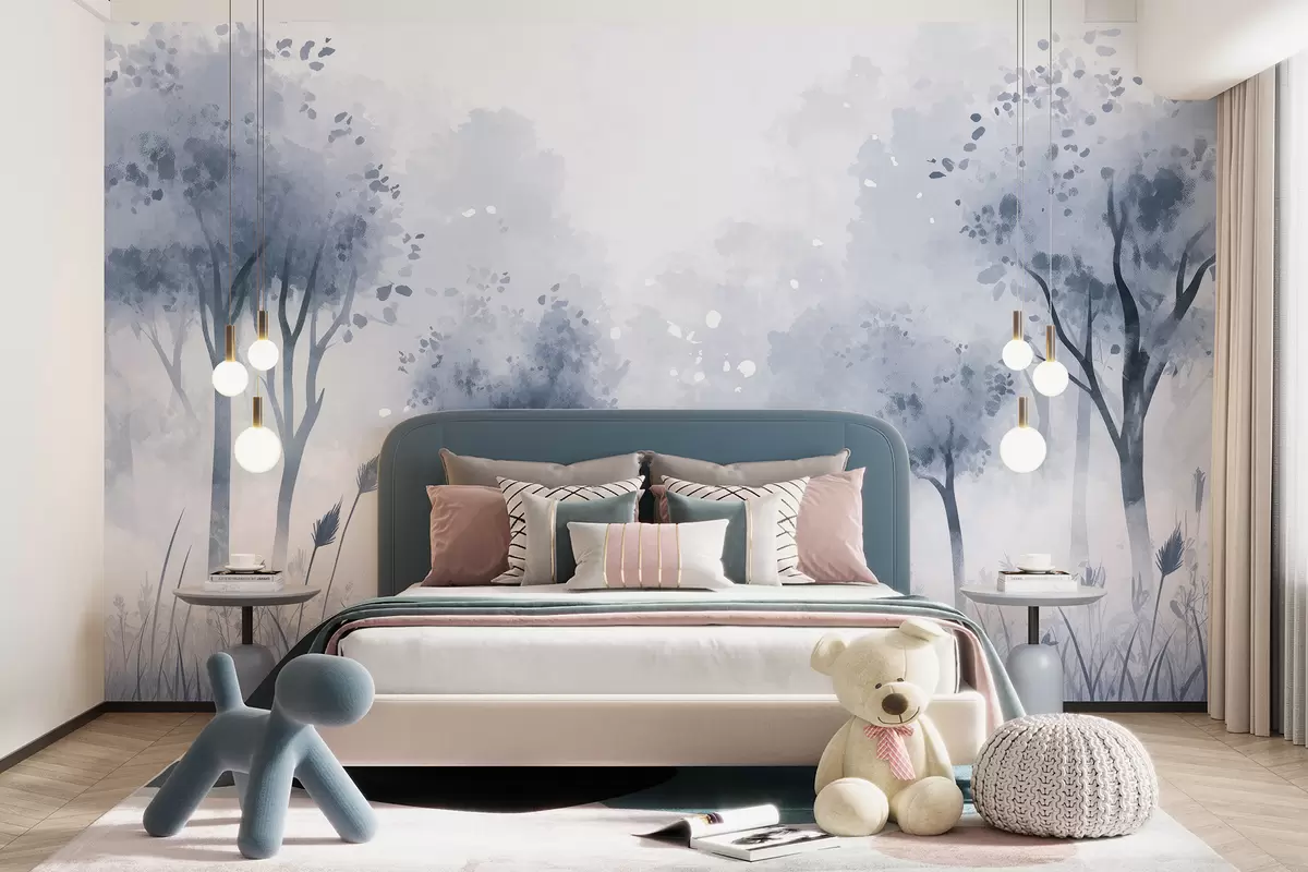 Fotobehang Aquarel bos met gras en bomen, grijze kleur N° w01546v2