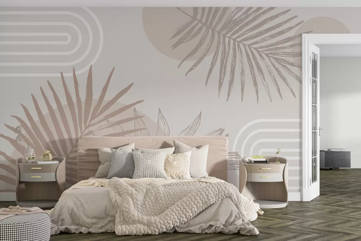 Fotobehang Geometrisch behang met palmbladeren in boho-stijl N° w01601