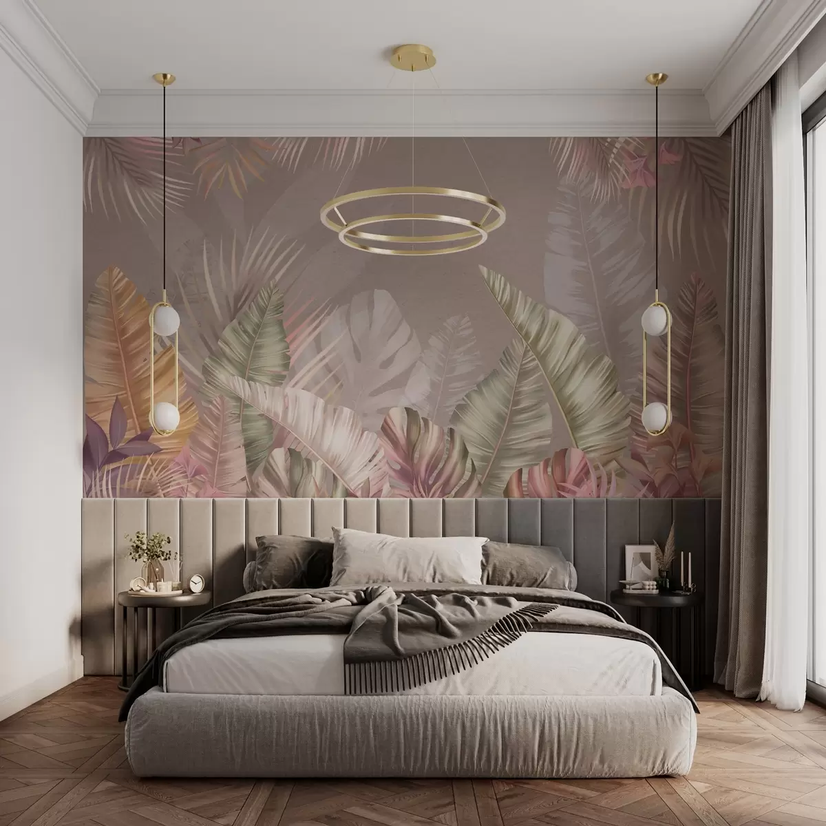 Fotobehang Tropische bladeren in zachte pasteltinten N° w01684