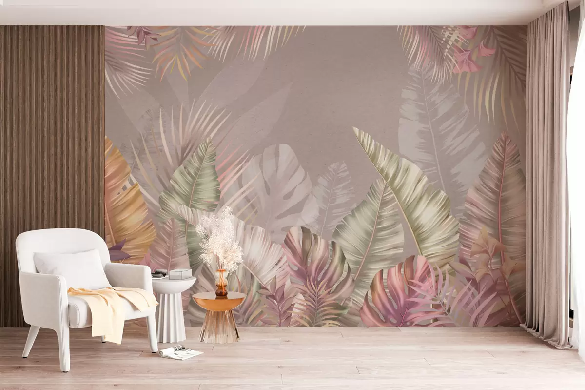 Fotobehang Tropische bladeren in zachte pasteltinten N° w01684