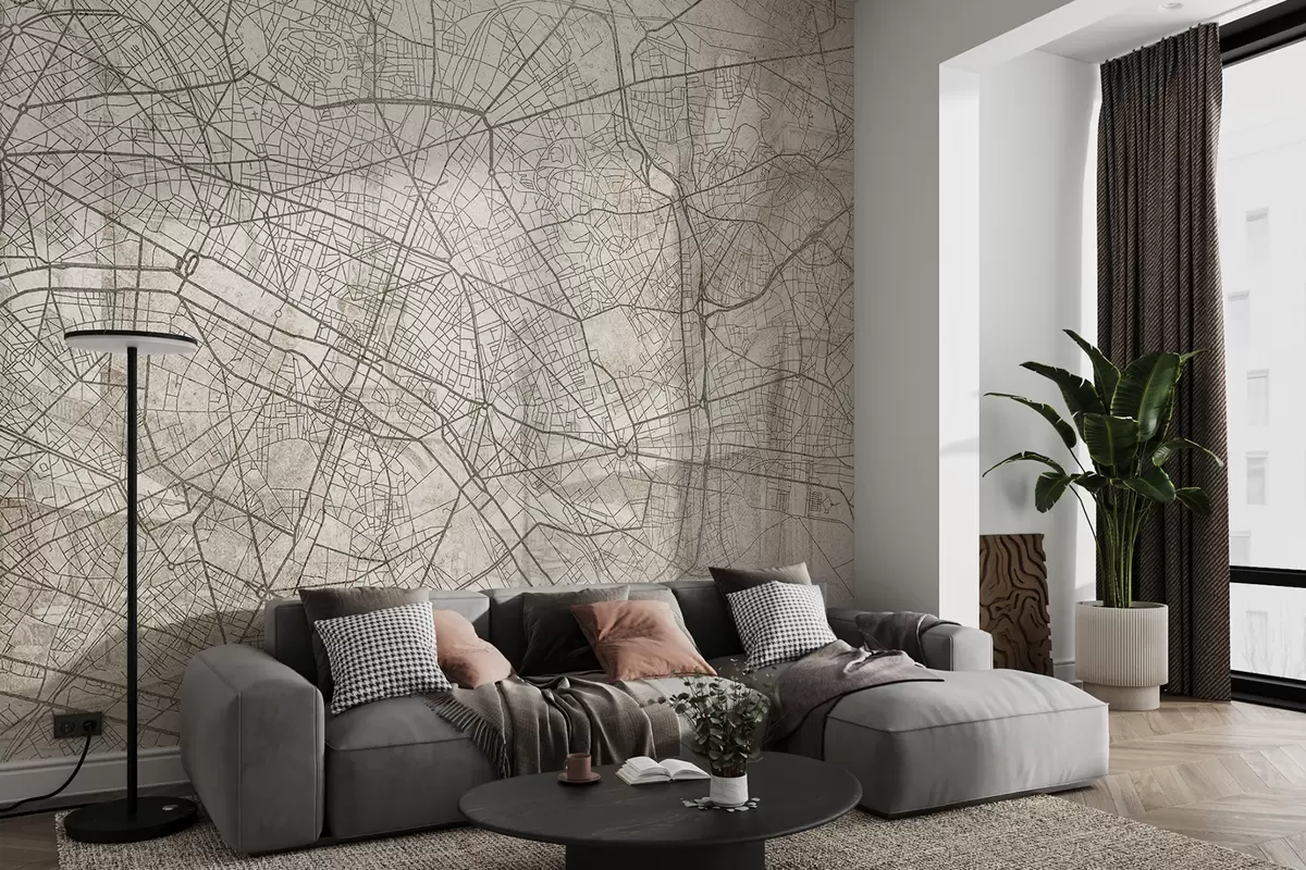 Fotobehang Plattegrond Parijs, lijntekening, architectuur, Frankrijk, beige kleuren N° w01697