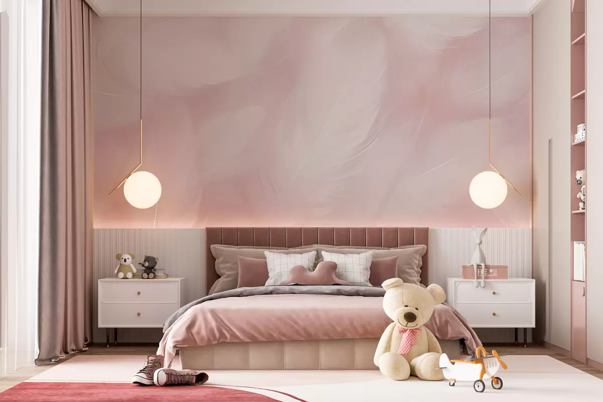Fotobehang Schattige veren op roze achtergrond N° w01703
