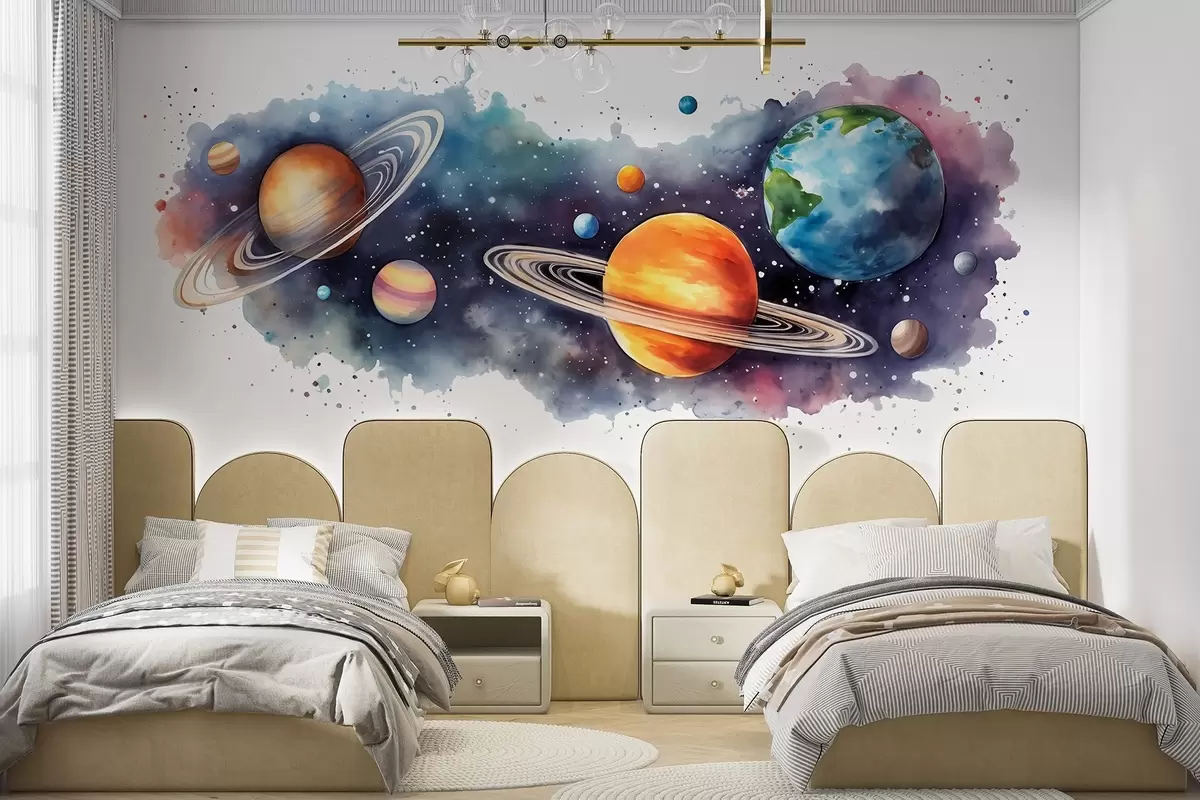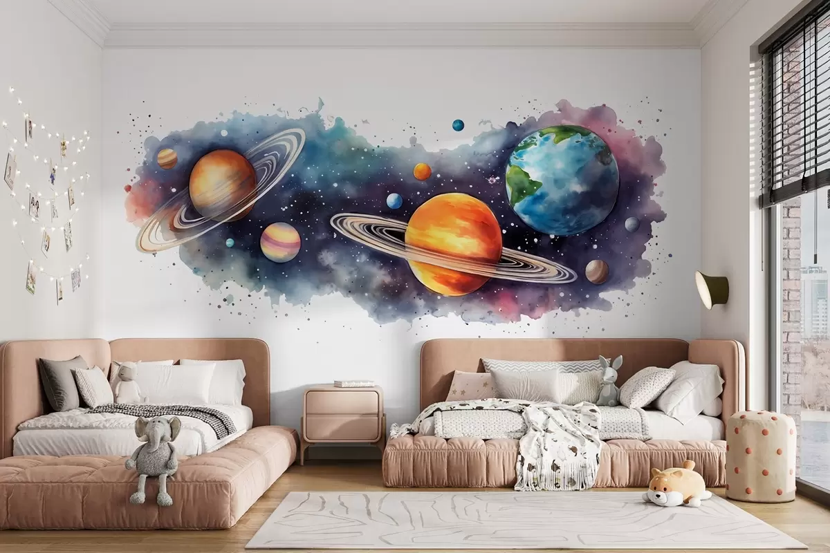 Fotobehang Aquarel planeten, ruimte, kosmisch, Aarde, Saturnus N° w01802