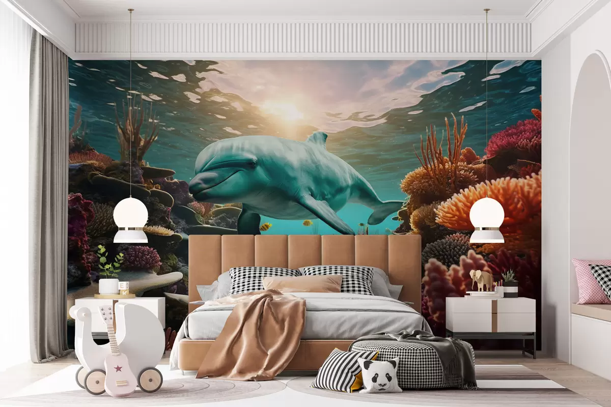 Fotobehang Grote dolfijn in de onderwaterwereld van koraalriffen N° w01873