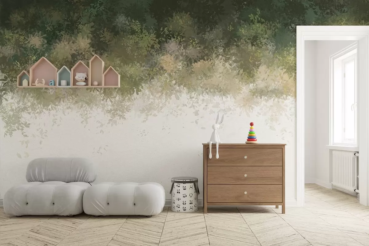 Fotobehang Mooie groene bladeren, bloemen ornament, aquarel, natuur N° w01879
