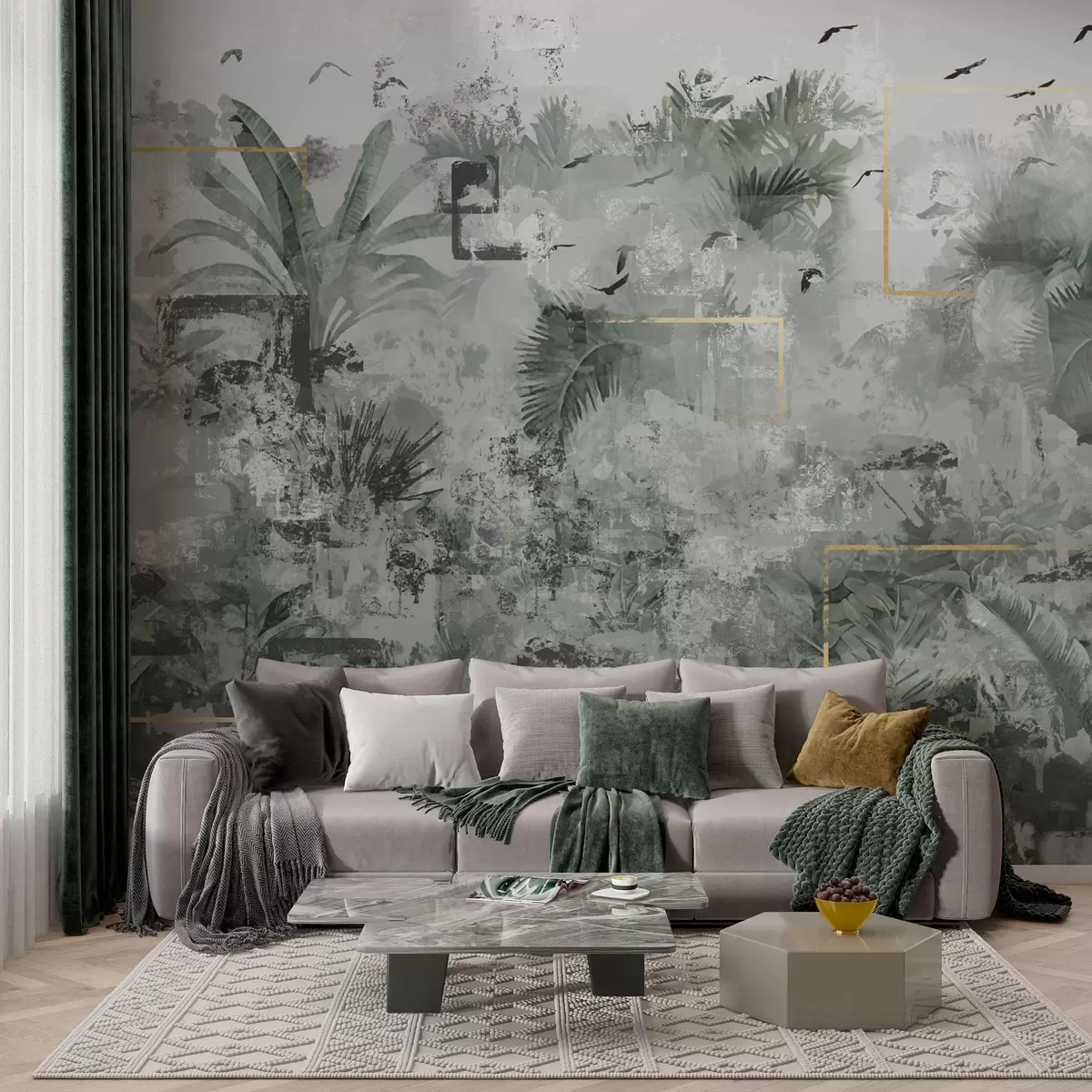 Fotobehang Silhouet van regenwoud in grungestijl N° w01917