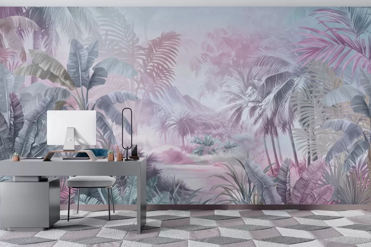 Fotobehang Regenwoud in zachte blauwe en roze tinten N° w01931v2
