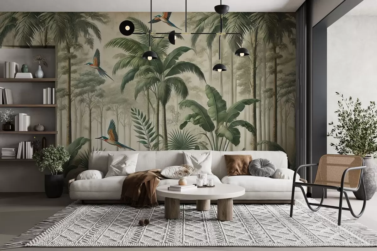 Fotobehang Panorama met tropisch landschap en vogels N° w01957