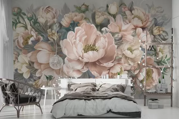 Fotobehang Grote bloemen in beige poederkleur N° w01966v2