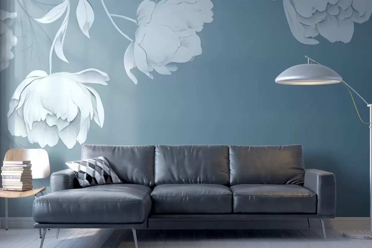 Fotobehang Delicate bloemen op lichtblauwe achtergrond N° w02035