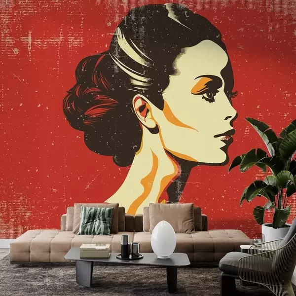 Fotobehang Retro meisje op rode achtergrond N° w02055v3