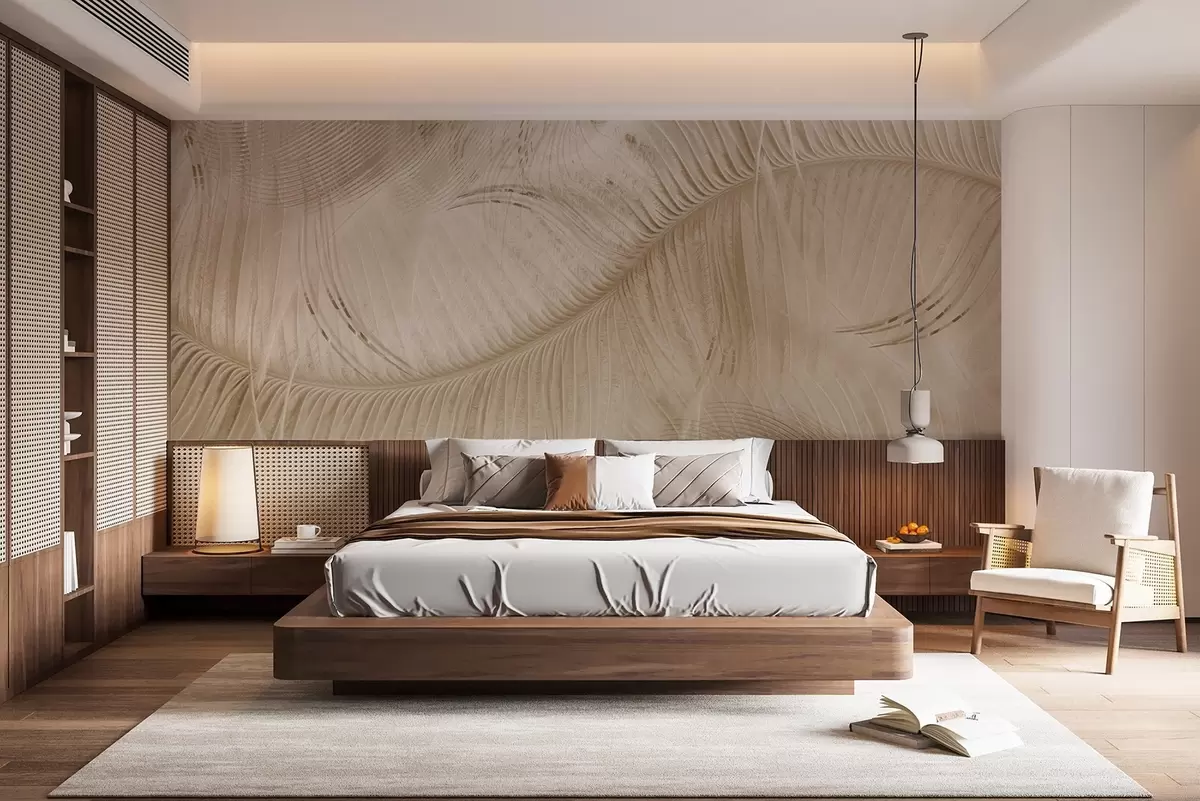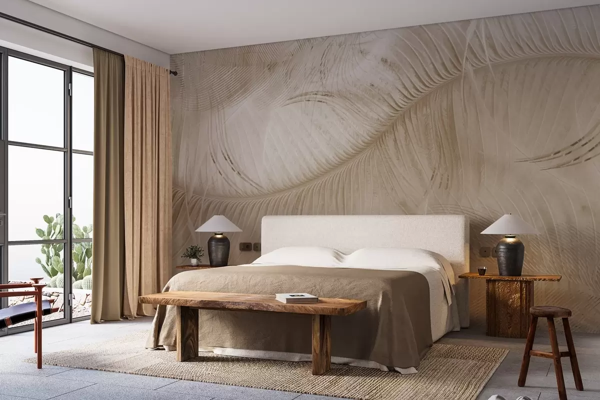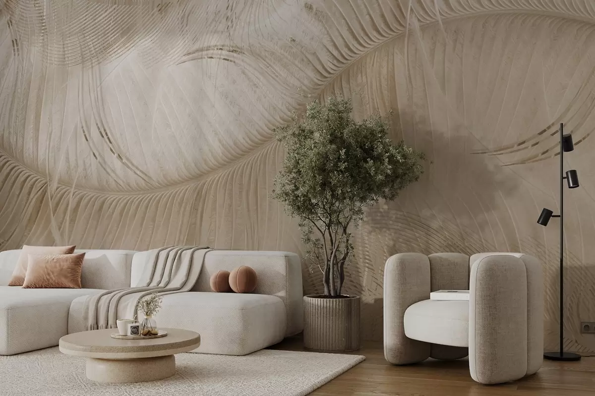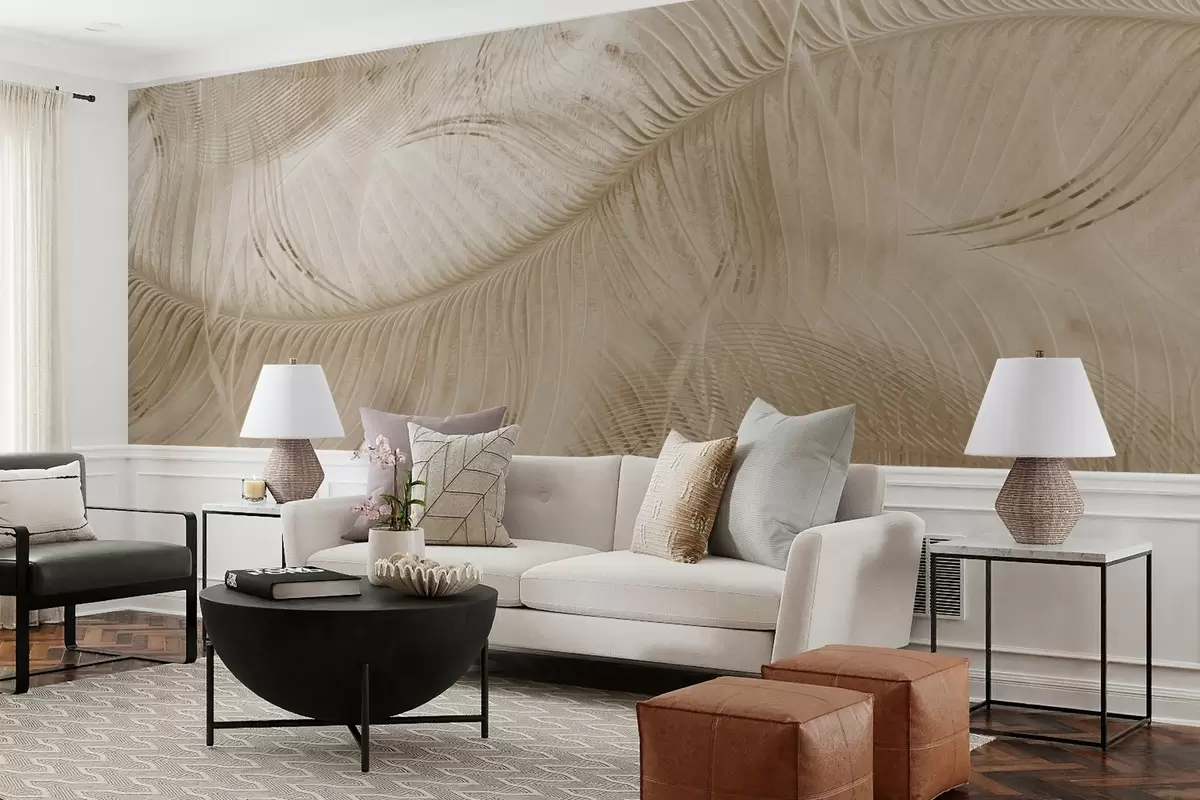 Fotobehang Lichte vedertextuur in beige tinten N° w02072v1