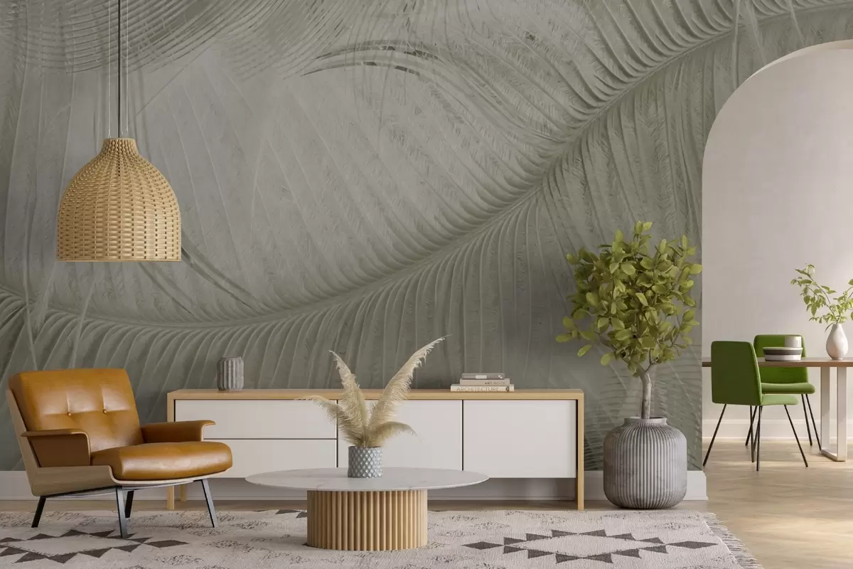 Fotobehang Lichte veerstructuur in groene tinten N° w02072v2
