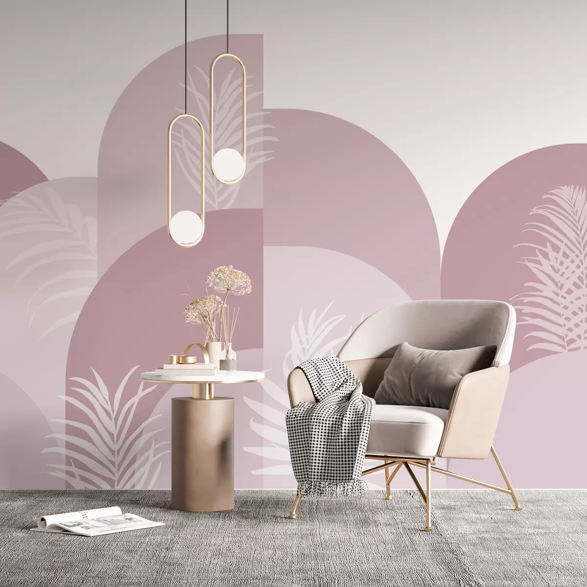 Fotobehang Trendy bogen met tropische bladeren roze kleur N° w02101v4