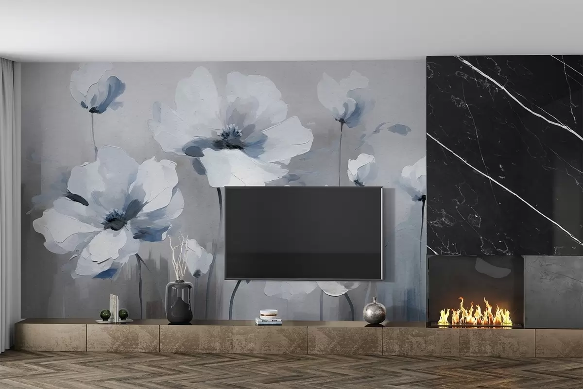 Fotobehang Met olieverf geschilderde bloemen op een betonnen muur N° w02120v1