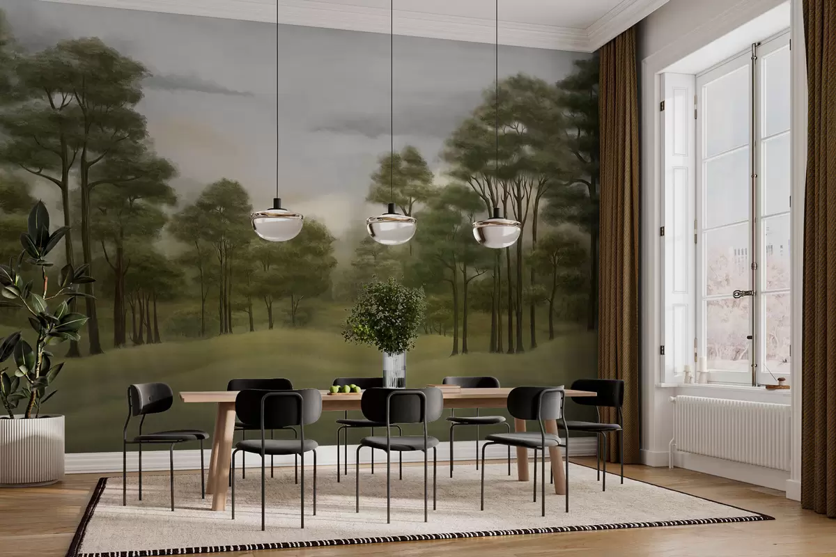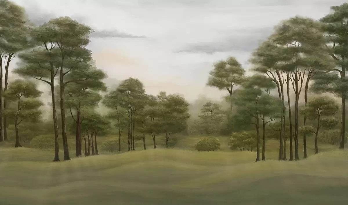 Fotobehang Rustig boslandschap in zachte tinten N° w02193