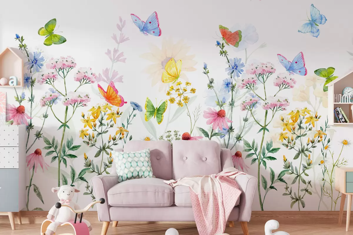 Fotobehang Kleurrijke bloemen en planten en vlinders N° w02238
