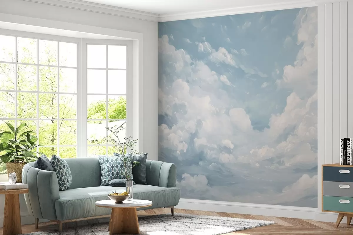 Fotobehang Blauwe lucht met gesimuleerde olieverfstreken N° w02313