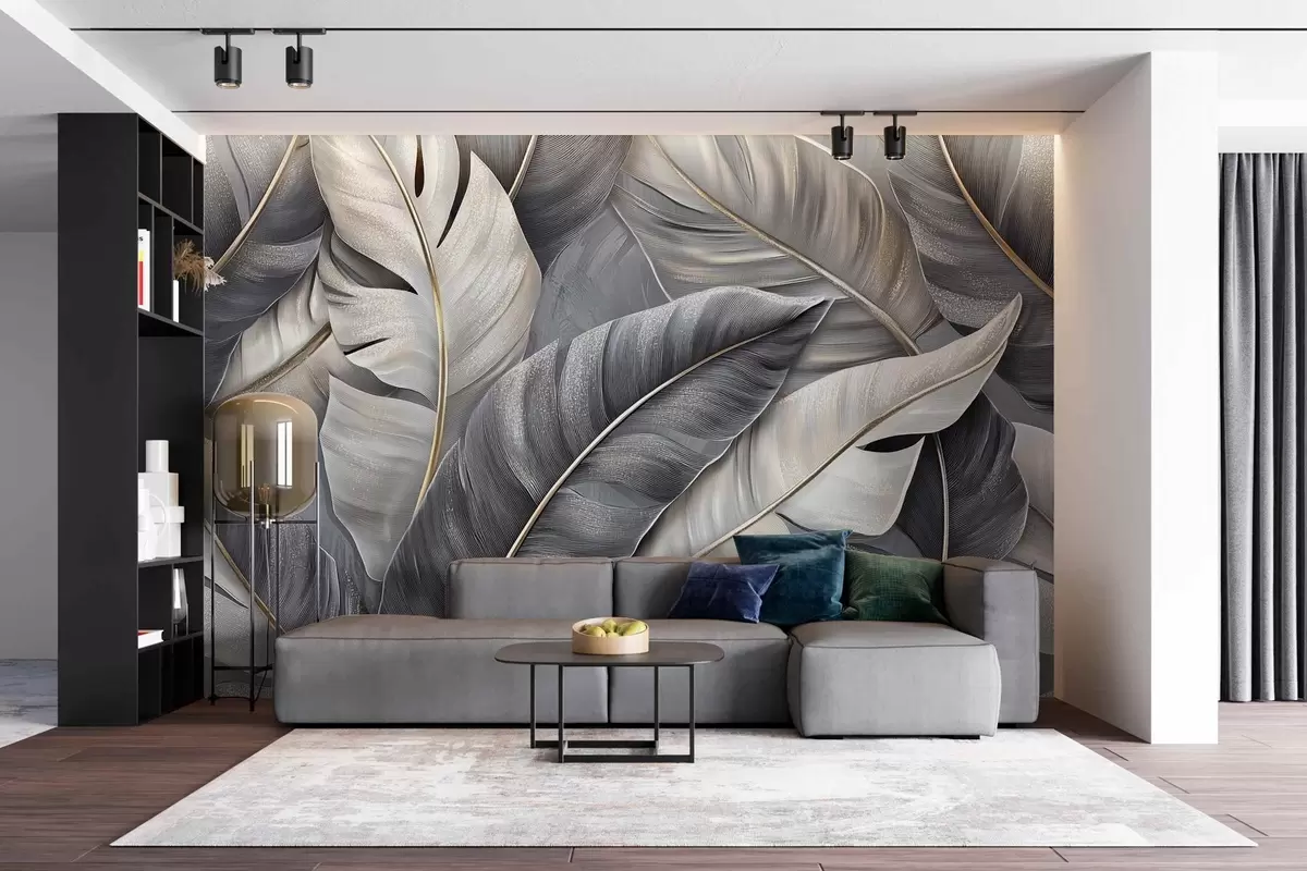 Fotobehang luxe behang met grote tropische bladeren N° w02342