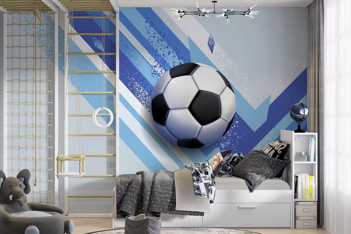 Fotobehang voetbalbal op dynamische abstracte achtergrond in blauwe kleuren N° w02347