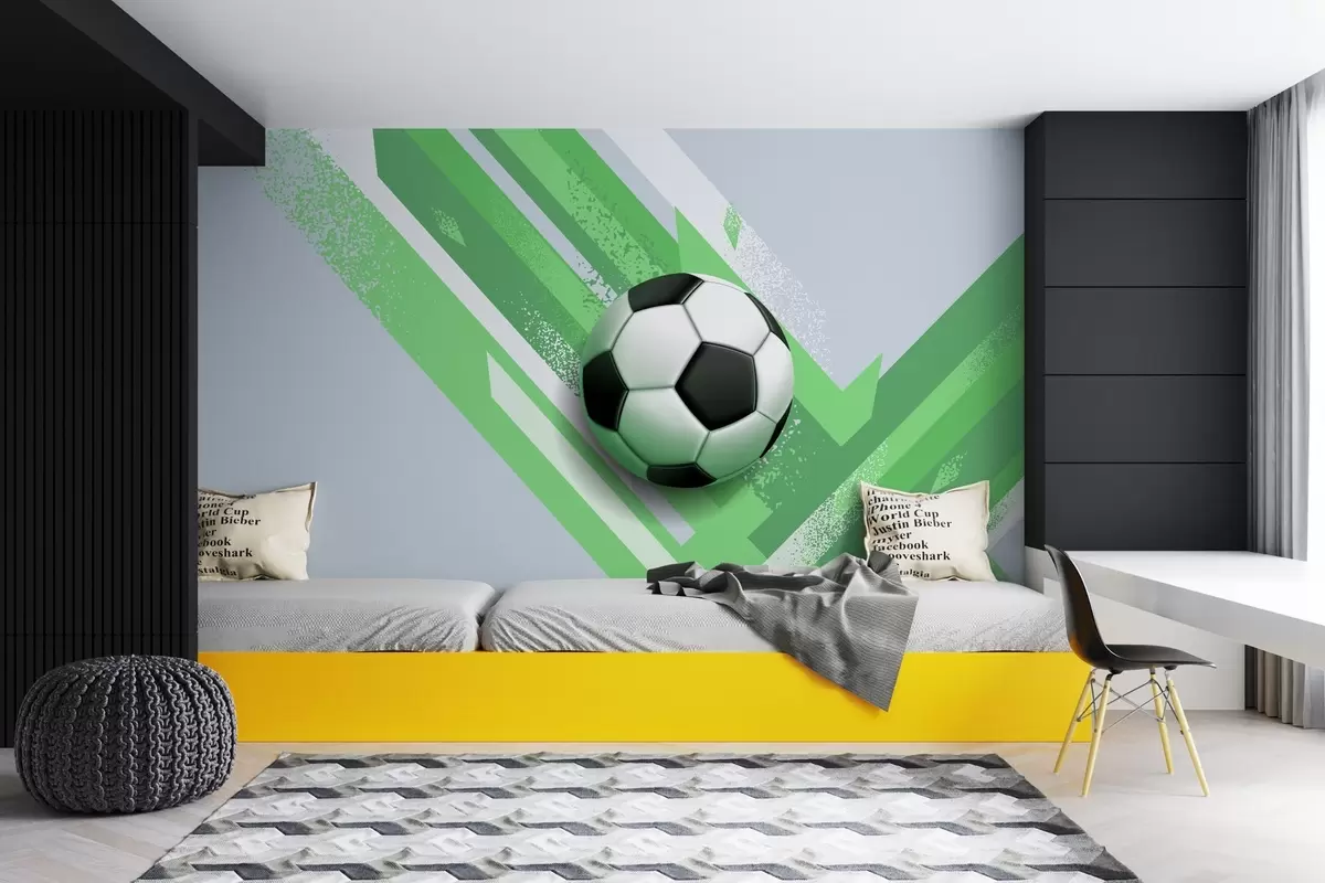 Fotobehang voetbal op dynamische abstracte achtergrond in groene kleuren N° w02347v1