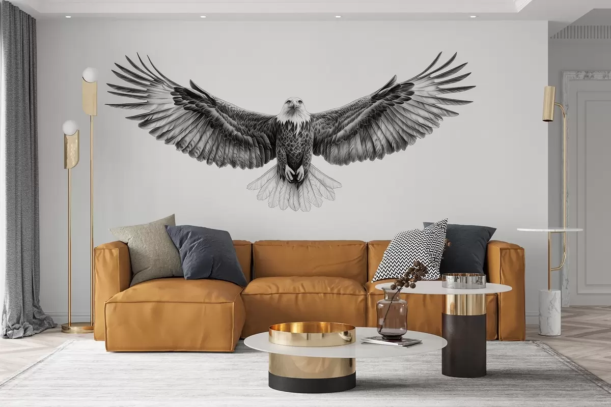 Fotobehang Vliegende adelaar, potloodtekening, vogels, minimalisme N° w02370