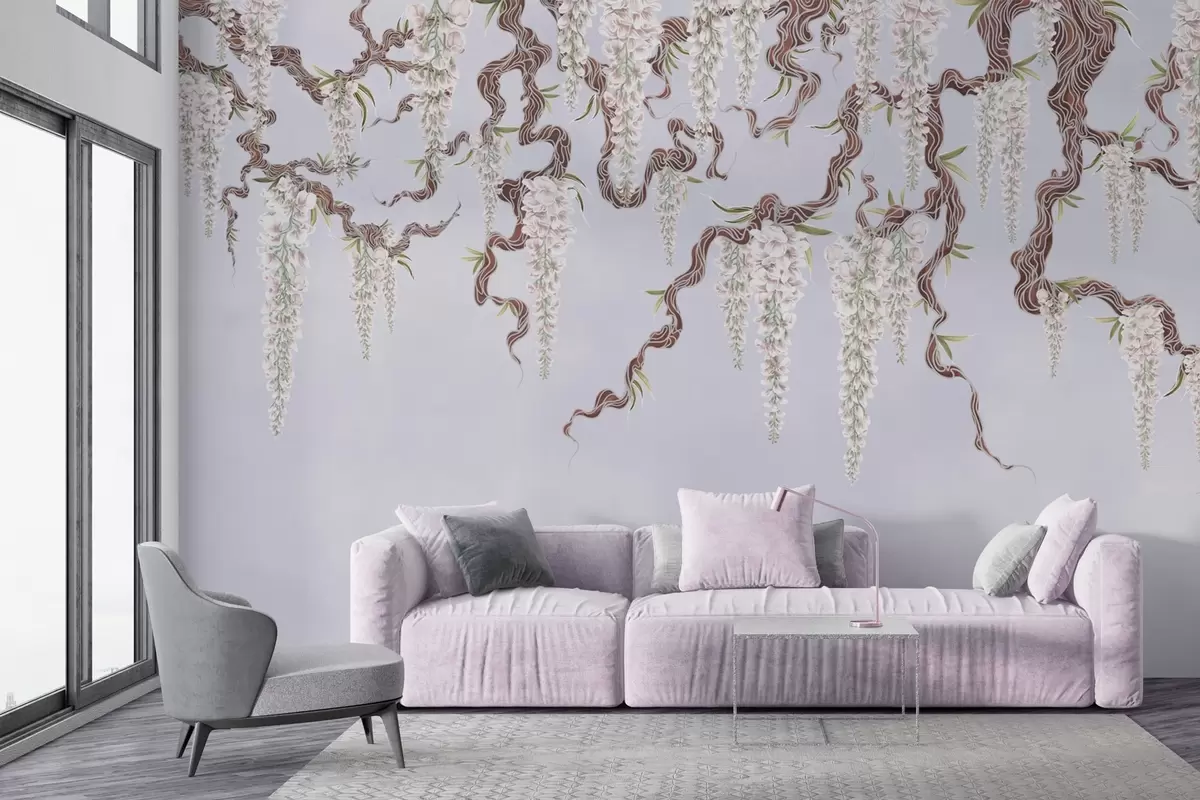 Fotobehang Roze blauweregen op een lichte, pastel grunge achtergrond N° w02372v2