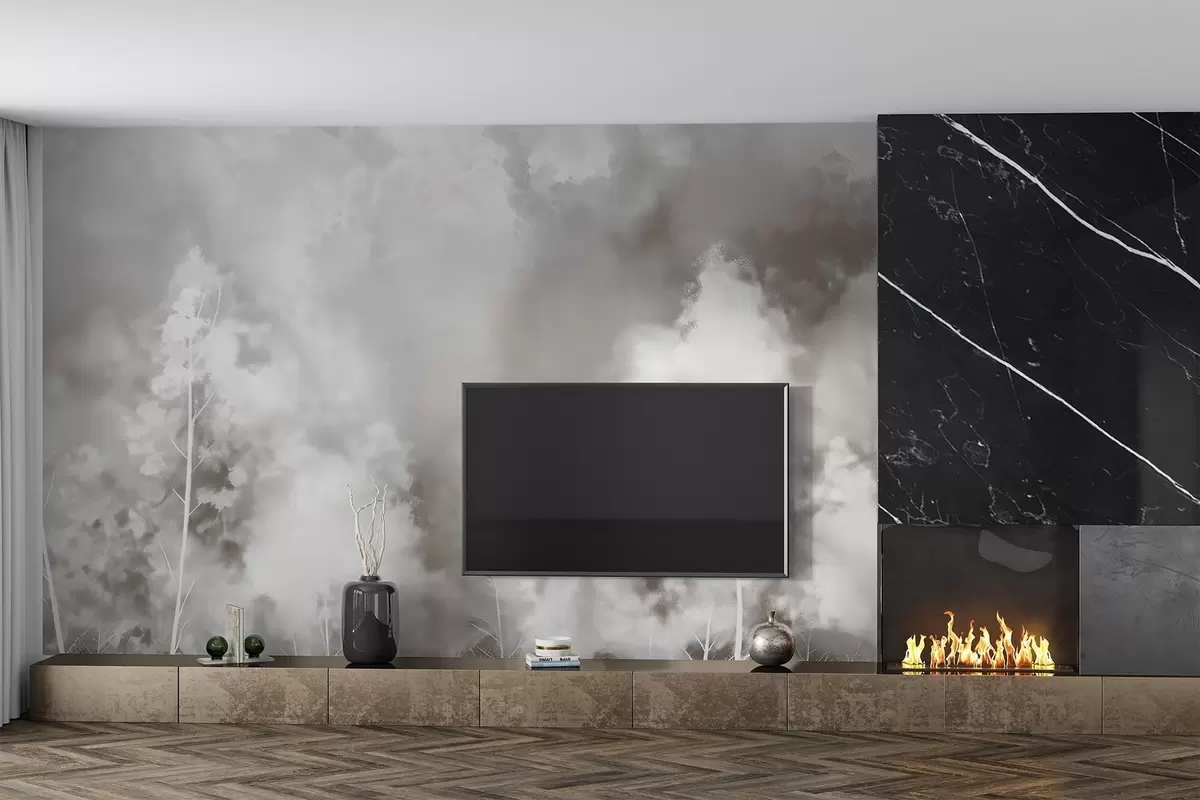 Fotobehang Stijlvol bos in pastelkleuren, krijteffect op de muur N° w02412v1