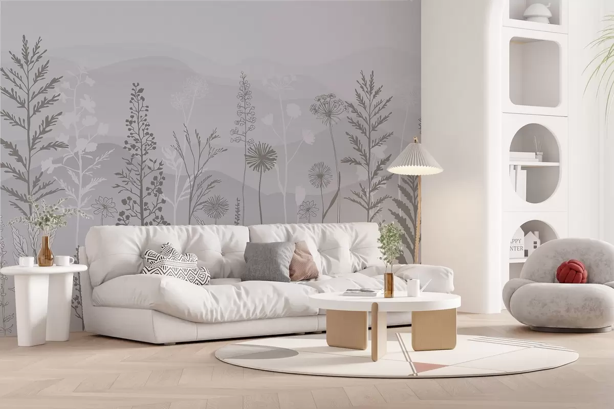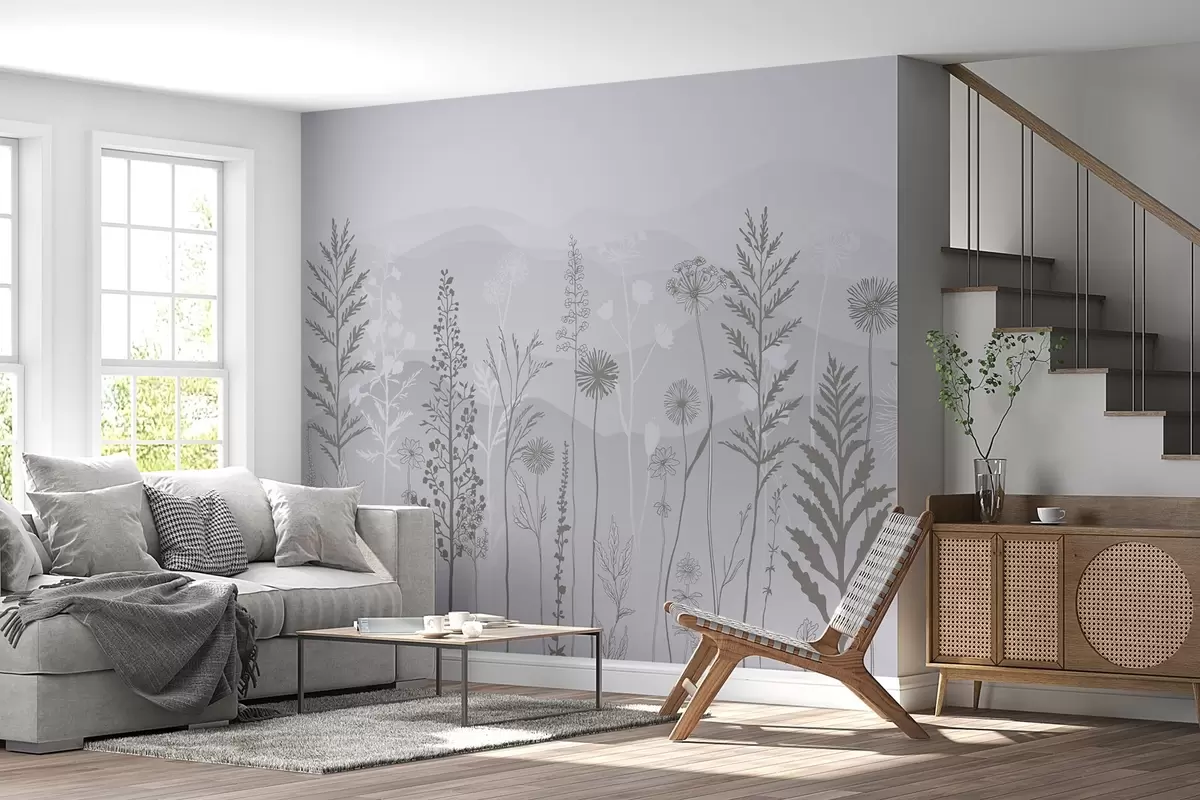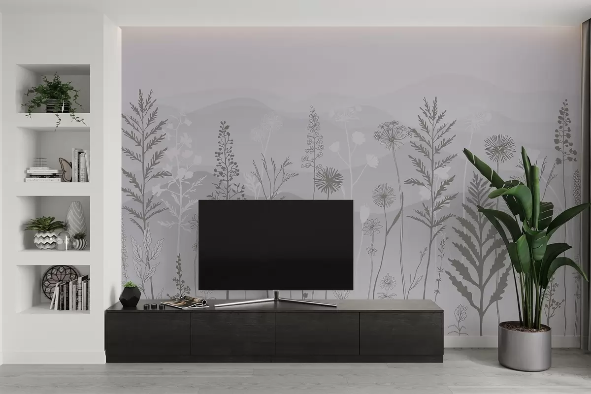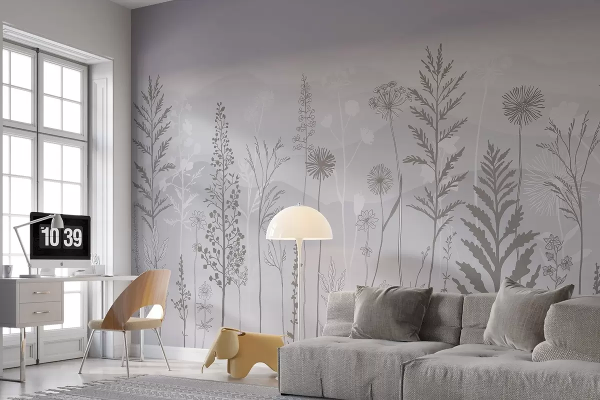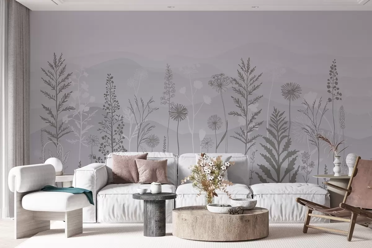 Fotobehang behang in eco-stijl, wilde bloemen in grijstinten N° w02443