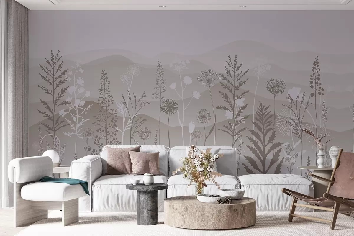 Fotobehang behang in ecostijl, wilde bloemen in lichtbruine tinten N° w02443v1