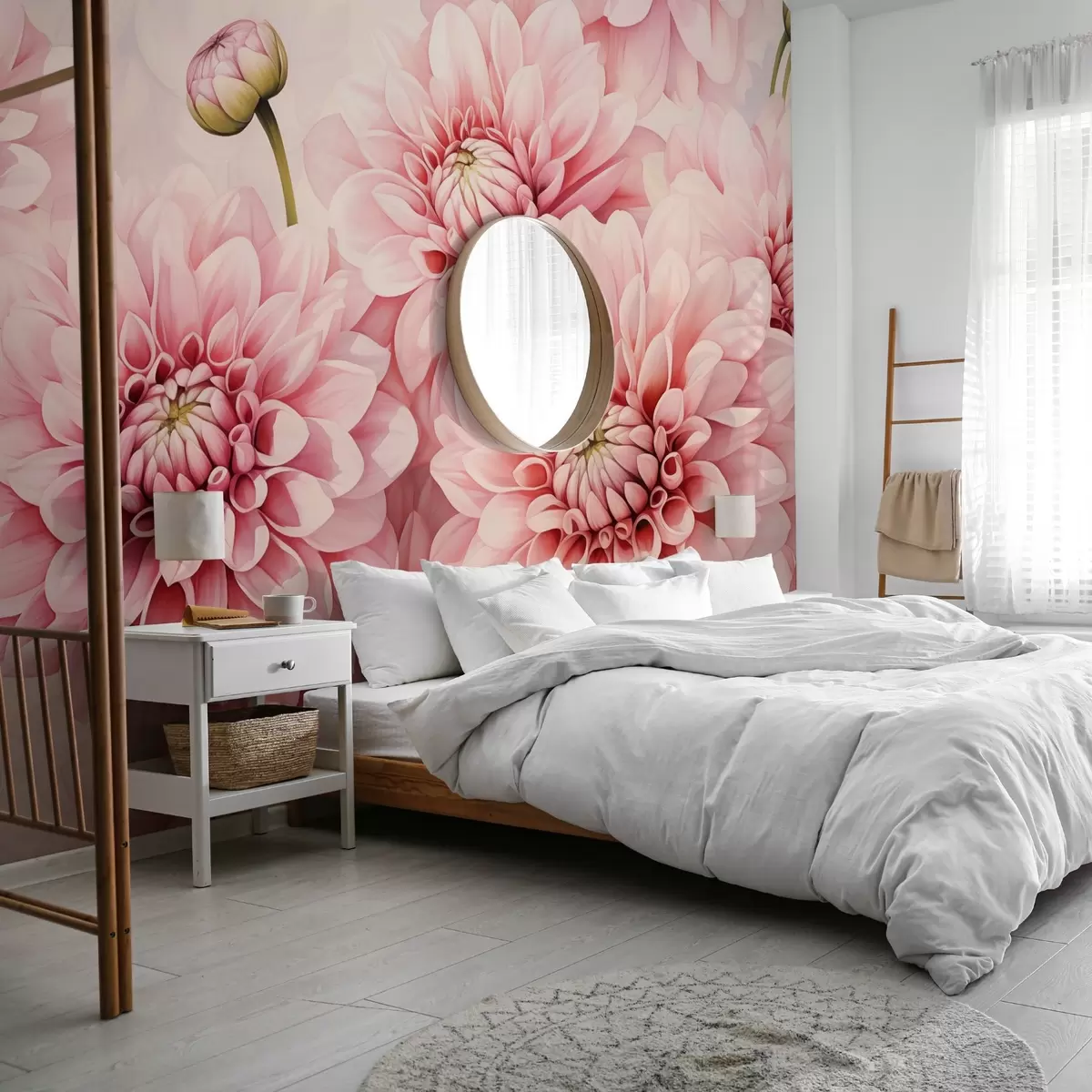 Fotobehang Roze chrysanten smitatie aquarel N° w02469