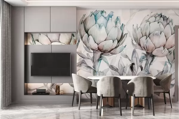 Fotobehang Mooie artisjok tekening, aquarel stijl, zachte kleuren N° w02482v1
