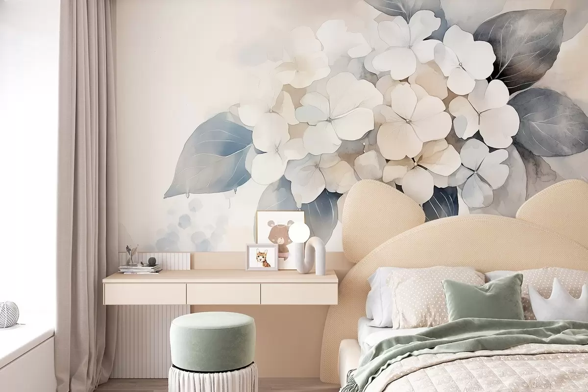 Fotobehang Hortensia bloem, zachte kleuren, aquarel stijl N° w02491