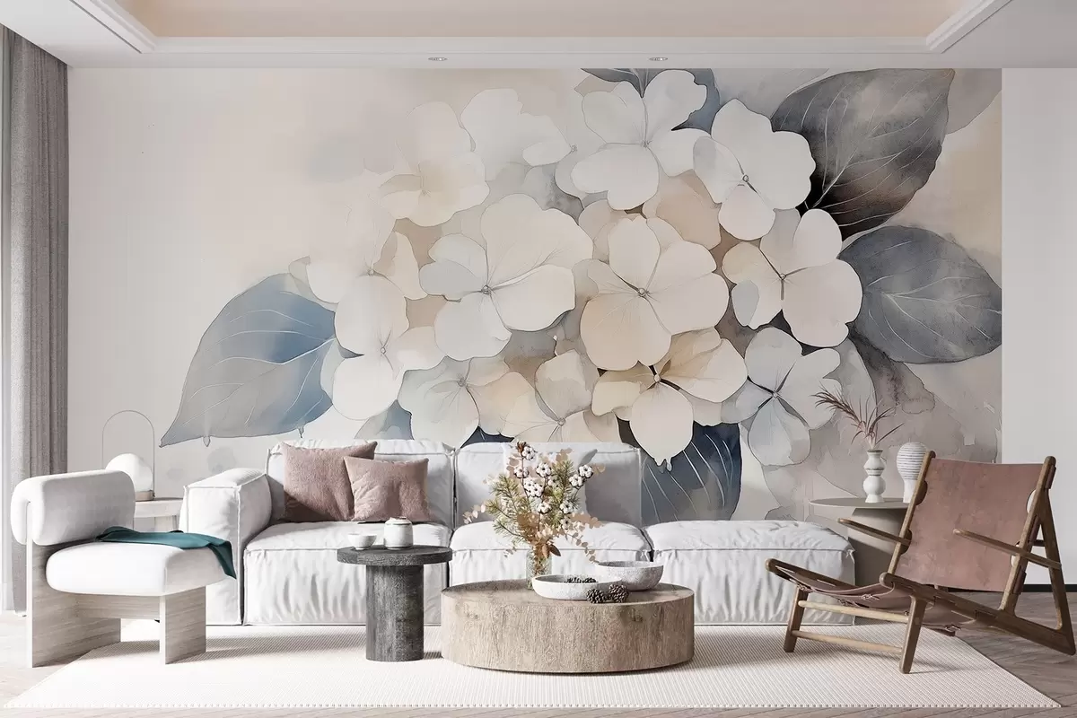 Fotobehang Hortensia bloem, zachte kleuren, aquarel stijl N° w02491
