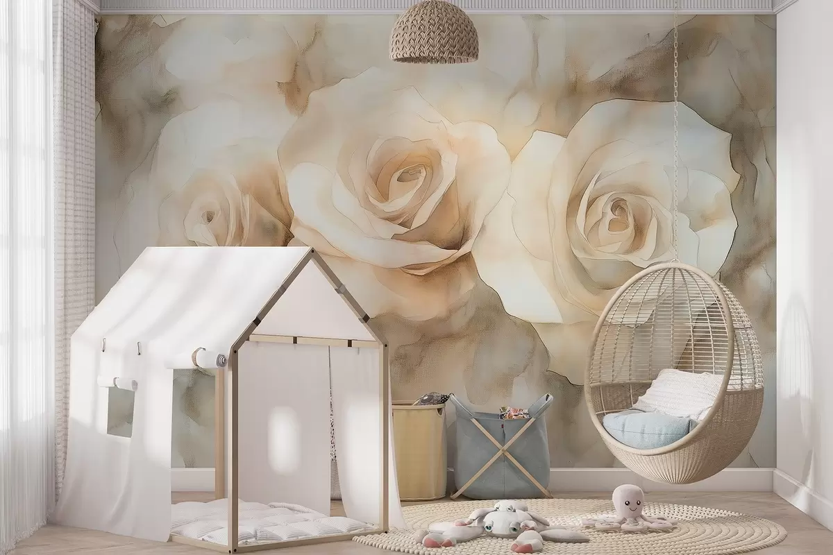 Fotobehang Prachtige rozen, aquarelstijl, beige kleuren, bohemien N° w02492