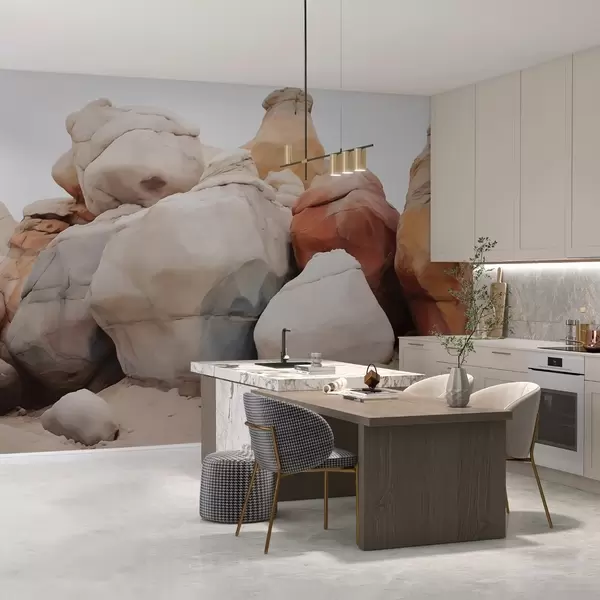 Fotobehang Grote stenen op zand imitatie van aquarel N° w02500